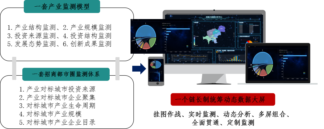 产业发展监测+产业对标都市圈监测+统筹动态数据大屏=数字化决策中心