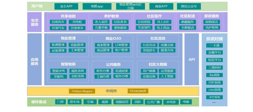 打造完整的智慧社区应用方案,让智慧社区平台真正具有多元化运营能力,共建社区生态,实现多方共赢。打造智慧服务体系,实现数据服务、提高满意度;打造智慧管理体系,实现线上数据化管理;打造智慧商业形态,依托移动商城,服务创收;打造智慧物业体系,实现数字化全面服务、多维管理。