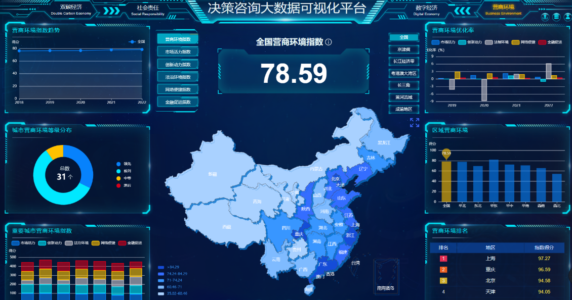 经济全景视图、民营企业全景视图、重大项目监测视图
