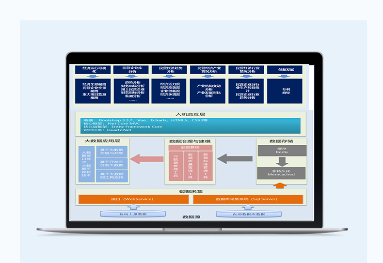 通过大数据分析和可视化技术,呈现民营经济运行态势,辅助党委政府决策。以数据流沉淀掌握企业综合行为、判断企业意向, 形成有依据民营经济发展趋势,支撑工商联具体业务和对民营经济领域的服务,助力区域打造最优营商环境缩影。