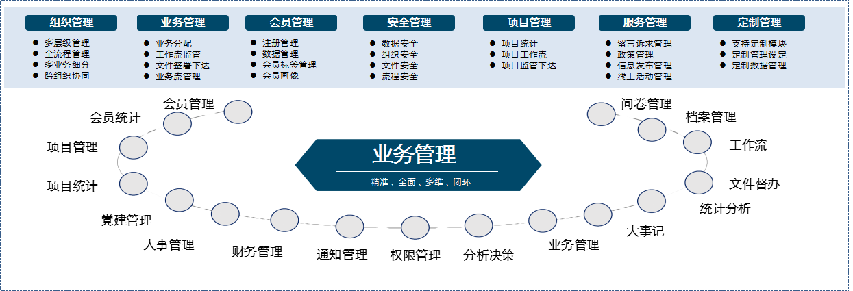 打造智慧工商联管理体系,实现省、市、区三级联动,打造全省“组织一盘棋管理、数据一库整合、工作流程一键推进、数据监测一屏掌控”的工作模,助力统战部和工商联使用该平台实现管理服务民营企业数字化转型。