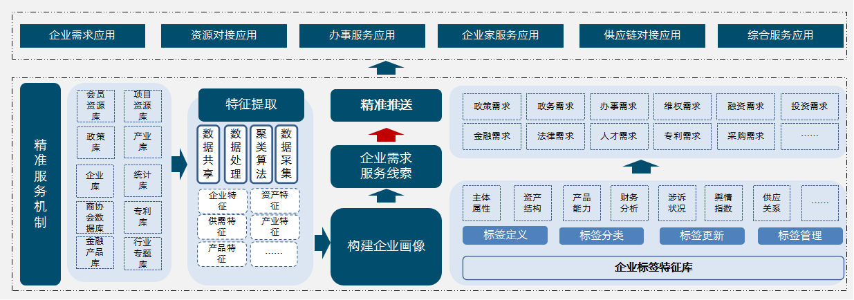 优化服务流程,提升服务效能,实现民营企业政策引导、诉求直达、资源对接等一站式服务,打造民营企业“信的过、找的到、用的上”的服务新生态; 服务机制:智能感知、主动服务、精准推送、资源互通、便捷高效、企业全生命周期服务!