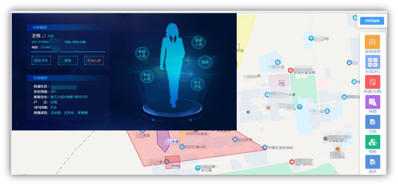 图形化楼宇管理,人员情况分布清晰,直观查阅民户情况。