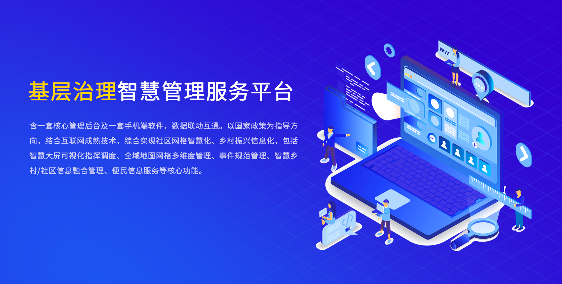 镇赉基层治理智慧管理服务平台,以国家政策为指导方向,结合互联网成熟技术,聚焦社区网格智慧化、乡村振兴信息化,构造党建引领、体系完善、理念先进、科技支撑的“互联网+”治理服务平台。发挥信息化系统平台优势,形成“四个一”智慧信息化建设,一屏观天下,一网管全域,一单通民意,一站促振兴,助力提升城乡基层治理成效。