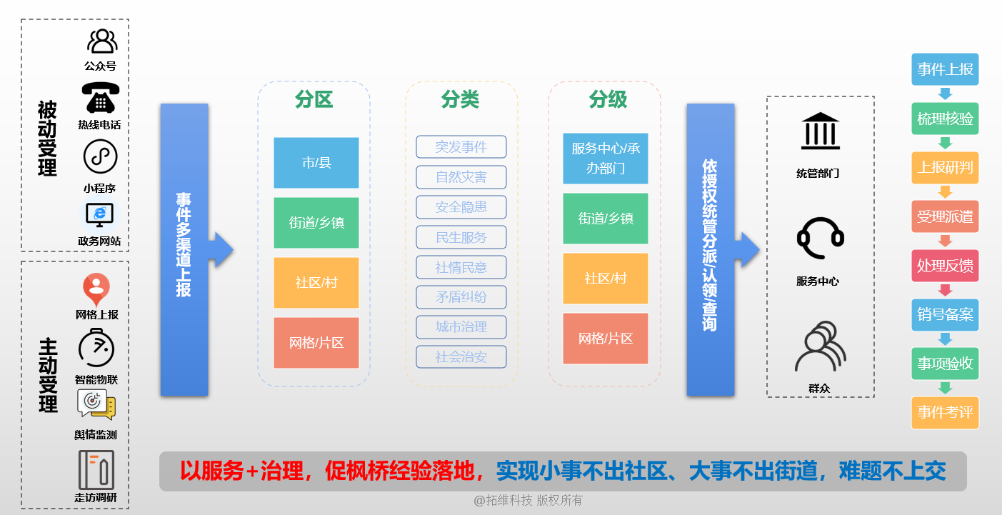 打造事件处置九闭环,民众急难愁盼事件闭环管理,中心监控、阶段分析排名各区办结情况,督促落实为民办事。