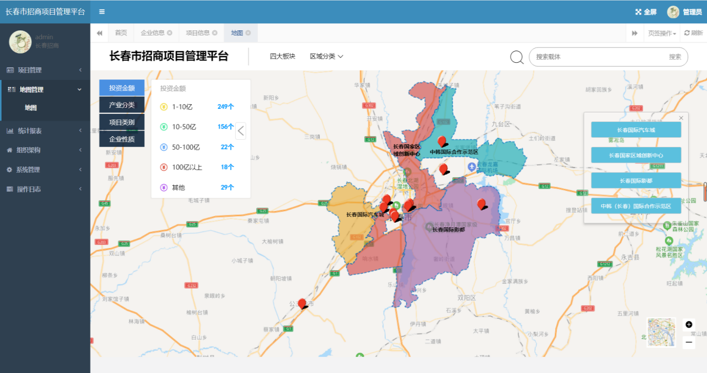 招商项目管理平台是为招商机构打造的招商项目监督和管理平台,实现对项目资源、企业资源及招商进度集中统一规范化管理。将项目建设任务具体化、项目化,按图研究、按图指挥,按图督战,确保项目快速推进,任务按期落实。实现“招商信息管理集中化、 管理流程去中心化”的高效管理战略机制。
