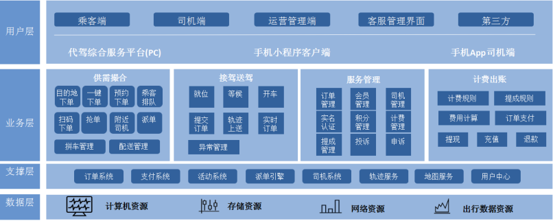 以智慧代驾、智慧出行为理念,依托“大数据+人工智能”,打造智慧出行解决方案。提供智慧出行供需撮合、接驾送驾、服务管理、计费出账等功能。